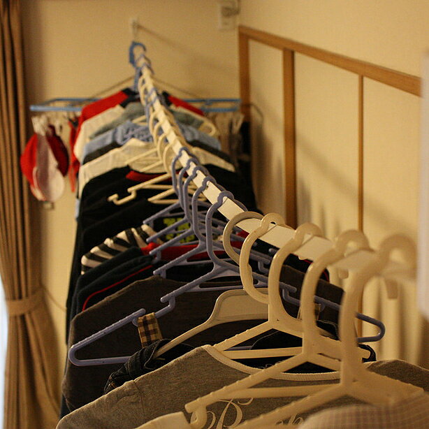 室内干しの際、扇風機やエアコンの風を当てながら行うと、早く乾き、臭くなりにくいのですが、強風を当ててもハンガーがずれてしまうことがありません。