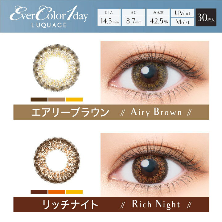 Ever Color 1day LUQUAGE エバーカラーワンデー ルクアージュ (1箱レンズ30枚入/1day/度なしor度あり) エバーカラー1dyシリーズ初の立体3トーン発色レンズが誕生! まるで生まれつきのような繊細で立体感のある瞳に。