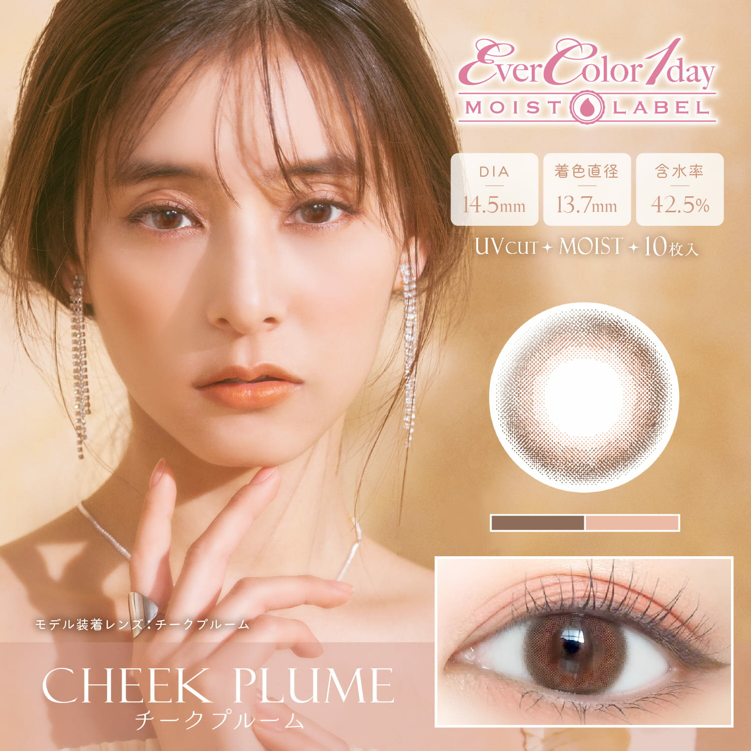 ※表示価格は税込み価格です 商品名 エバーカラーワンデーモイストレーベル UV 度数 度あり 使用期限 1日 内容量 1箱10枚入 カラー ディープティアード/チークプルーム/チークプルーム/シアーソルベ BC(ベースカーブ) 8.7mm DIA(レンズ直径) 14.5mm 医療機器承認番号 22600BZX00273A02 使い捨てコンタクトレンズご購入に関する遵守事項 コンタクトレンズは高度管理医療機器です。